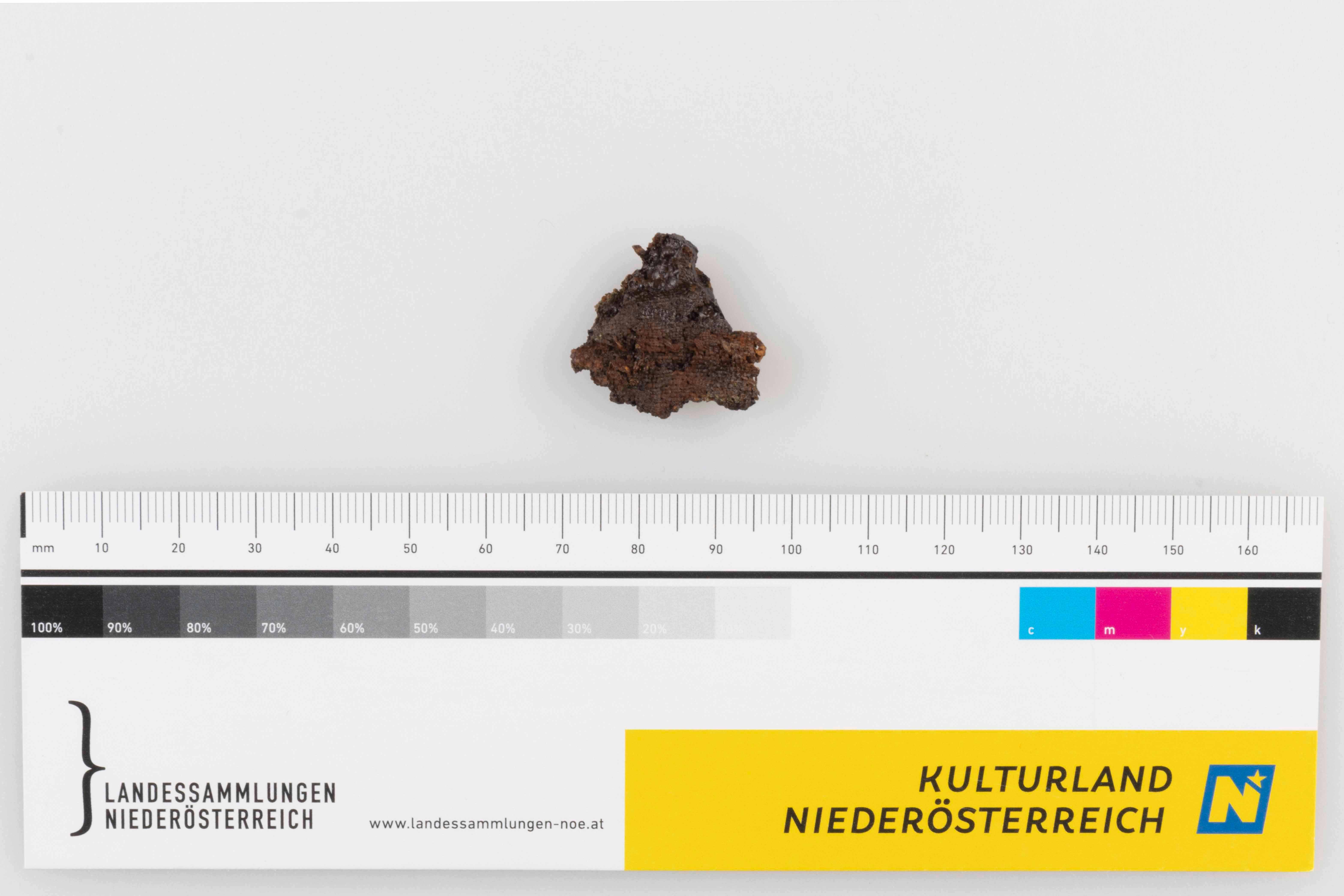 Drei Eisenplättchen; fragmentiert, stark korrodiert, mit Textilresten; 2,7 × 1,5 × 0,3 cm; 2,4 × 2,2 × 0,5 cm; 2,0 × 2,0 × 0,7 cm
