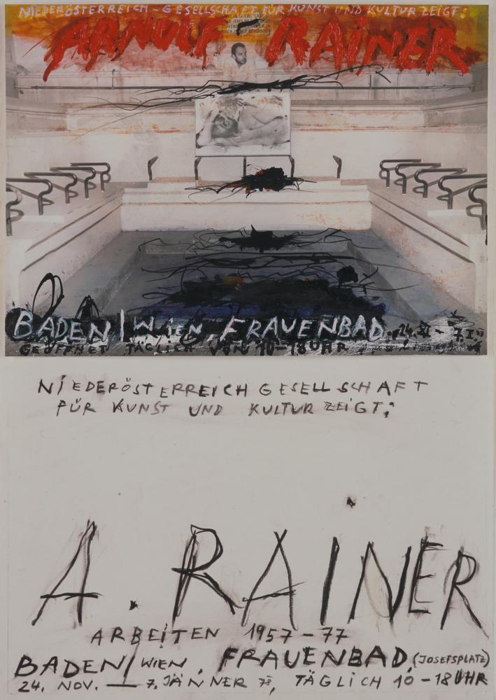 Signatursign. dat. u. bez.: "Niederösterreich Gesellschaft für Kunst und Kultur zeigt: A. Rainer Arbeiten 1957-77 Baden/Wien"