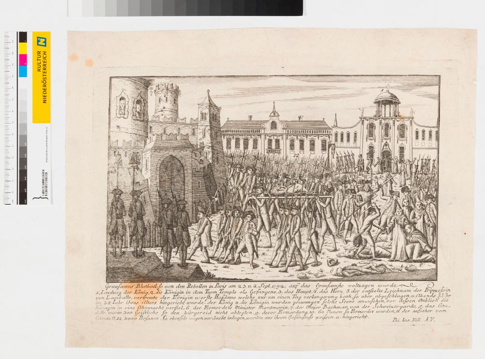 "Grausames Blutbad so von den Rebellen in Paris am 2., 3., u. 4. Sept. 1792 auf das Grausamste vollzogen wurde."
