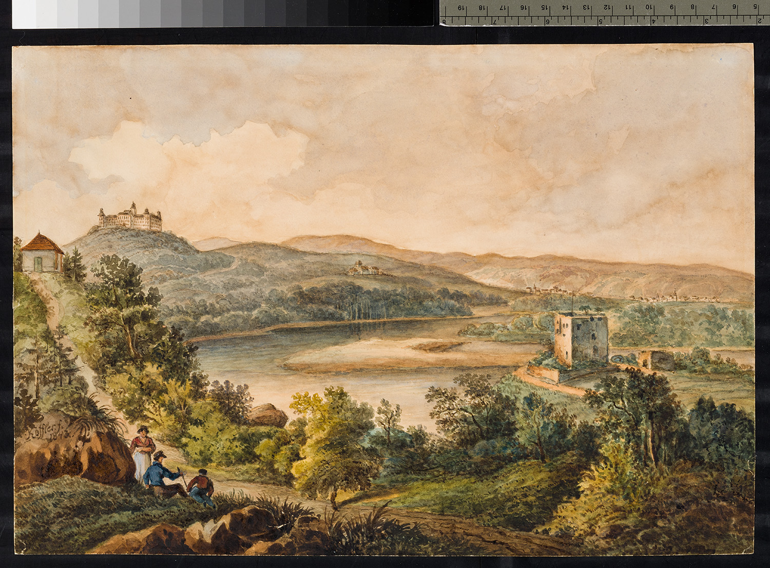 Signaturli. unten sign. und dat.: "Koffler. f. 1843."; rücks. bez.: "Göttweih 1843"; Mi. unten (am ehem. Trägerkarton) bez.: "Göttweih, und Ruine Bertholdstein."
