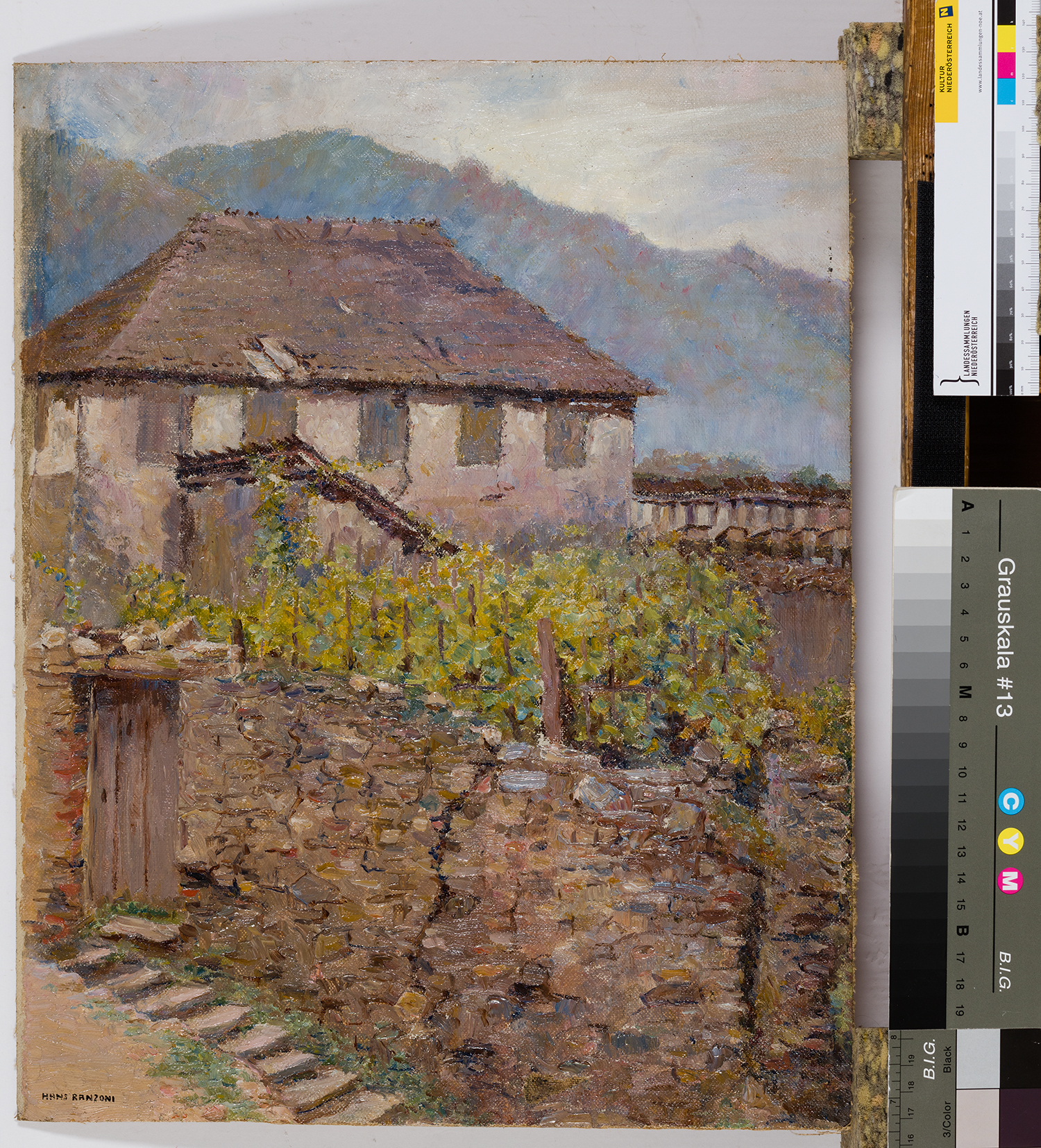 Signaturli. unten sign.: "HANS RANZONI"; rücks. bez.: "Weißenkirchen a. d. Donau Alte Mauern"