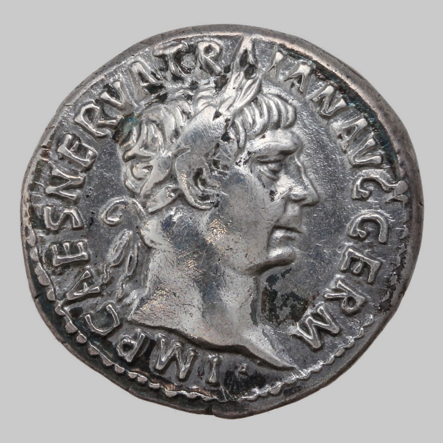 Avers: IMP CAES NERVA TRAIAN AVG GERM; Lorbeerkranz nach rechts ?