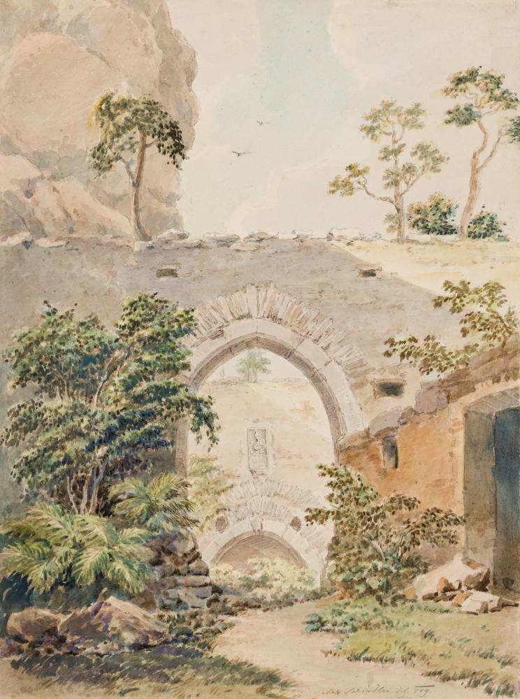 Signaturre. unten sign. und dat.: "Joh Schindler del. 819."; rücks. bez.: "Ansicht des zweiten Hofes in dem Schloß Agstein an der Donau."