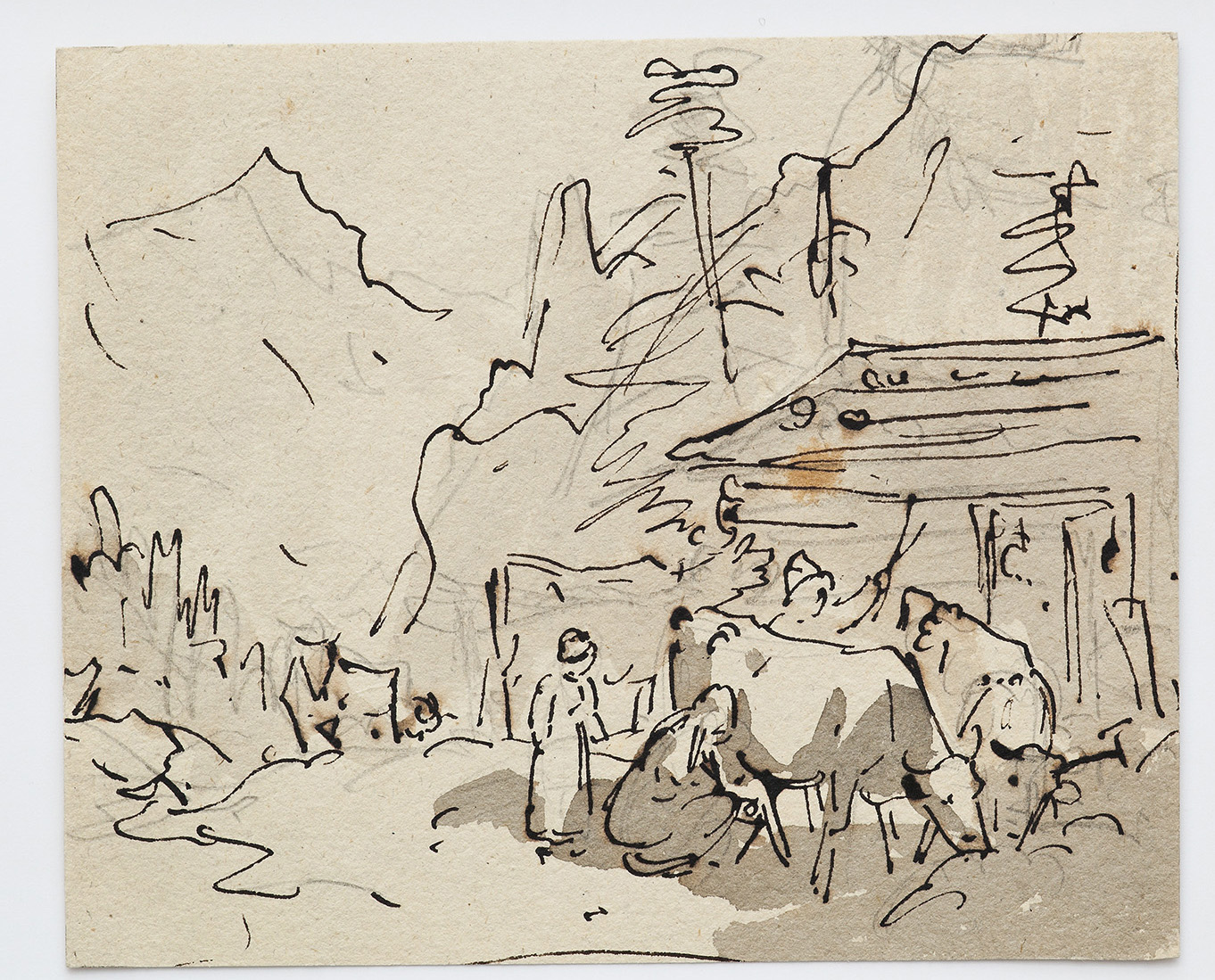 Bleistift, Tinte, laviert auf Papier