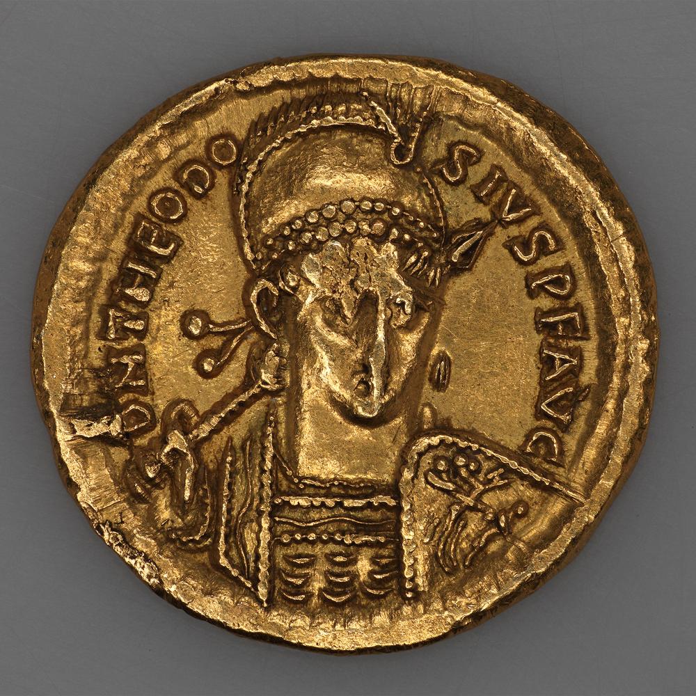 Avers: D(ominus) N(oster) THEODO - SIVS P(ius) F(elix) AVG(ustus)