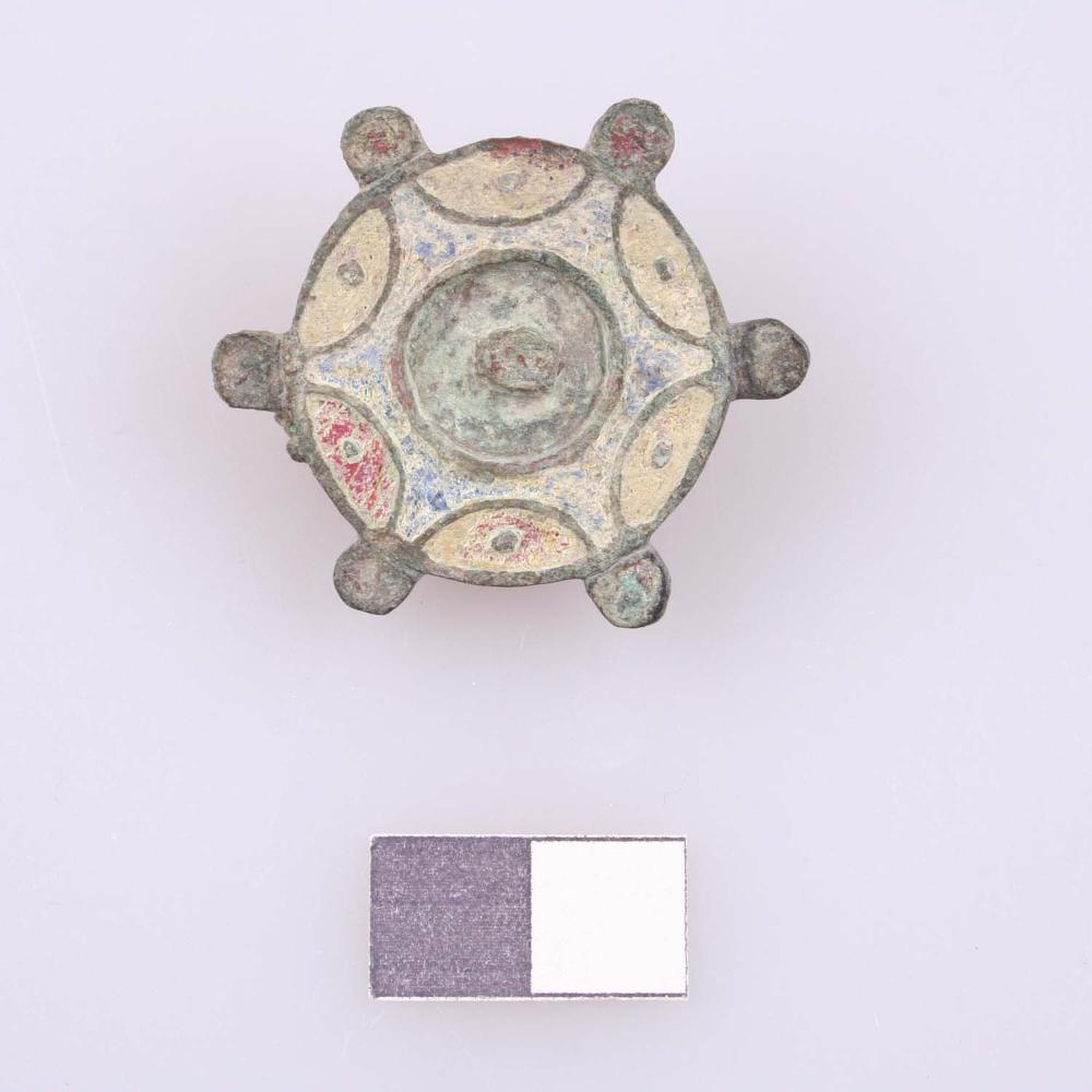 Runde Scheibenfibel mit Emailresten