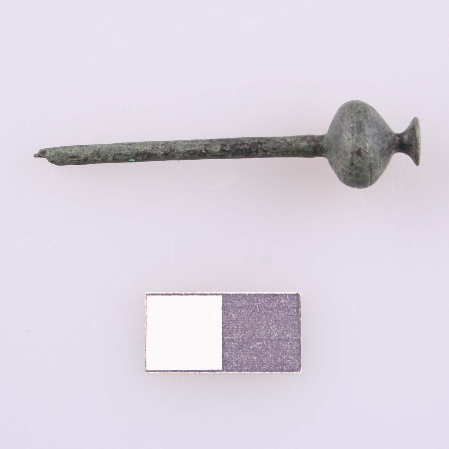 Vasenkopfnadel mit gequetscht-kugeligem Kopf, Schaft abgebrochen