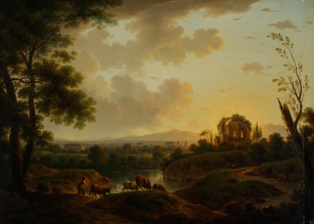 Abendlandschaft mit dem Tempel der Minerva Medica in Rom