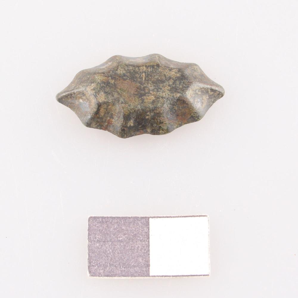 Ovaloider Beschlag, auf der Rückseite Rest einer Befestigungsvorrichtung
