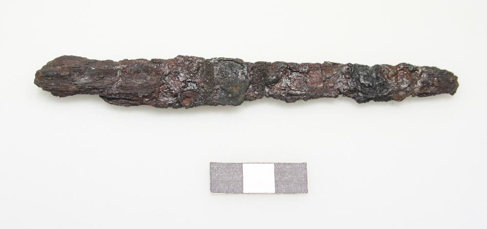 Eisenmesser mit ankorrodierten Holzresten, wohl des Griffes