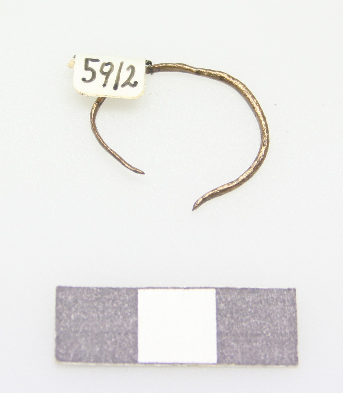 Offener Kopfschmuckring aus rundstabigem, leicht abgeflachtem Buntmetalldraht, unverziert