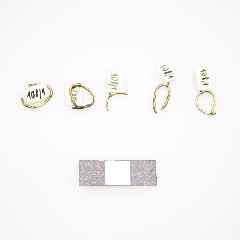 Fünf feine, offene Ringlein aus rundstabigem Buntmetalldraht; Dm 0,7-1,2, Drahtstärke 0,1-0,12 cm.