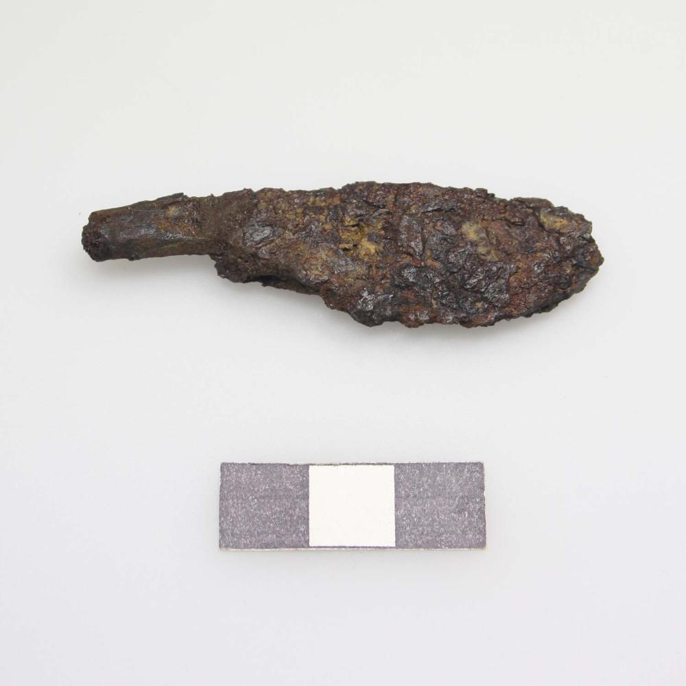 Kleines, fragmentiertes Eisenmesser mit am Griff ankorrodierten Holzresten