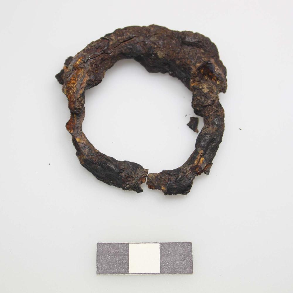 Verschiedene Fragmente eines Ringes aus Eisen mit ankorrodierten Eisenteilen; ehem Dm 5,6-6,2, D 0,7-1,3 cm.
