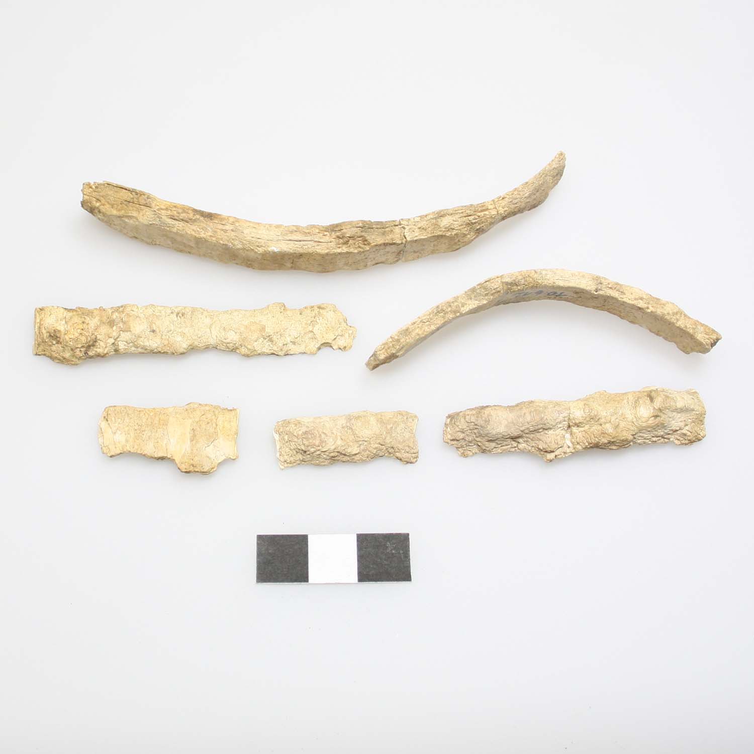 Sieben Fragmente (eines Zierstücks?) aus dem Stoßzahn eines Elephas prim (eiszeitl. Mammut)
