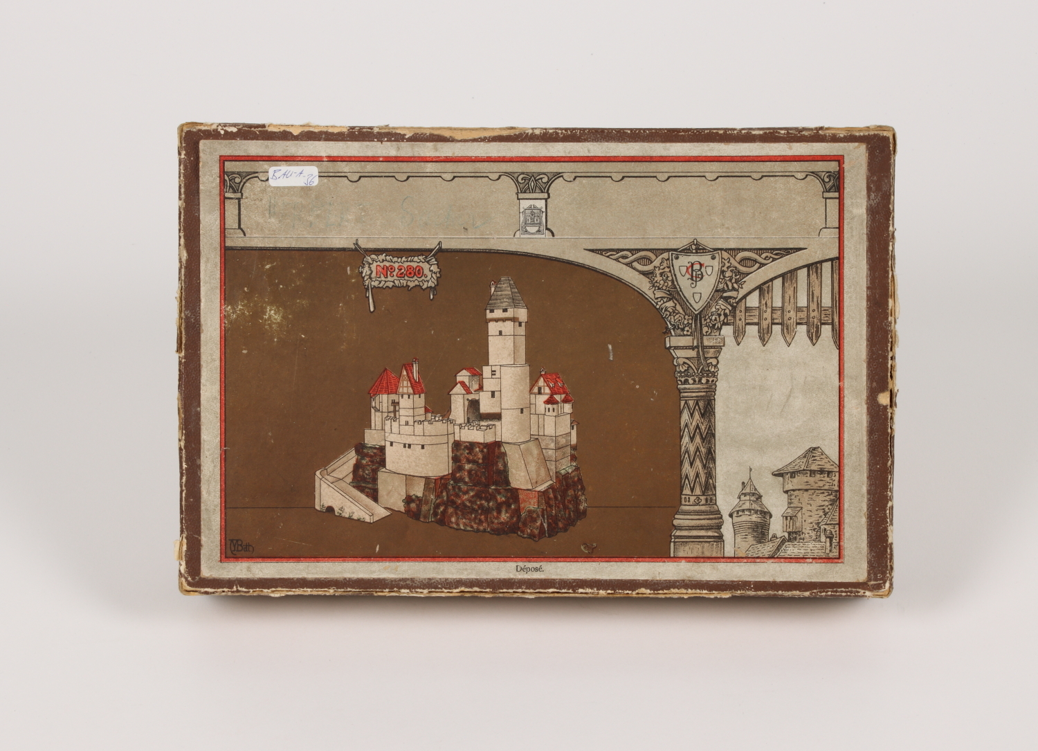 Holzbaukasten mit Burgmotiv, YBath, No. 280, Made in Germany