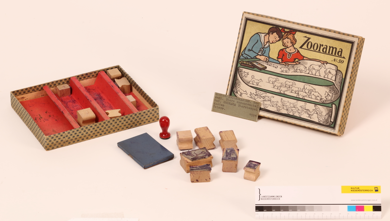 Stempelspiel "Zoorama", Druck. F. Adamitz, Wien, Made in Austria