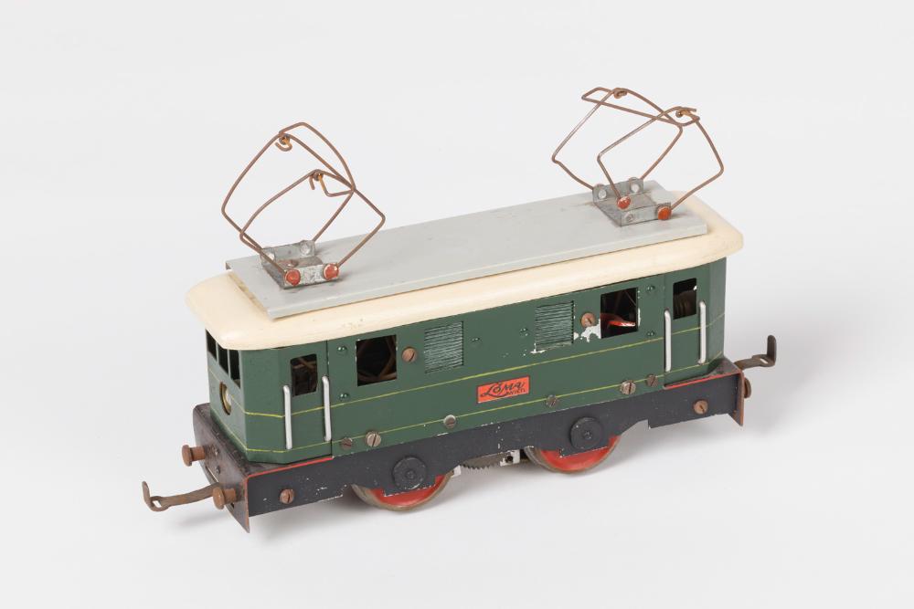 E-Lokomotive P 100 mit Stirnlampe, Achsfolge B, Spur 0, Fa. Löma Wien, Löster Maria, Wien, Made in Austria