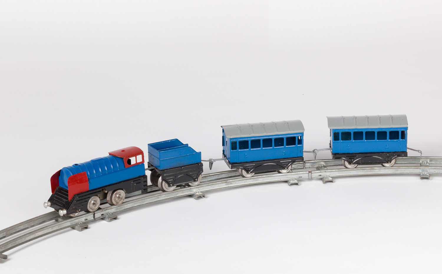 Zug-Grundpackung, Dampflokomotive mit Uhrwerkantrieb, Fa. Zbrojouka Brno, Made in Czechoslovakia