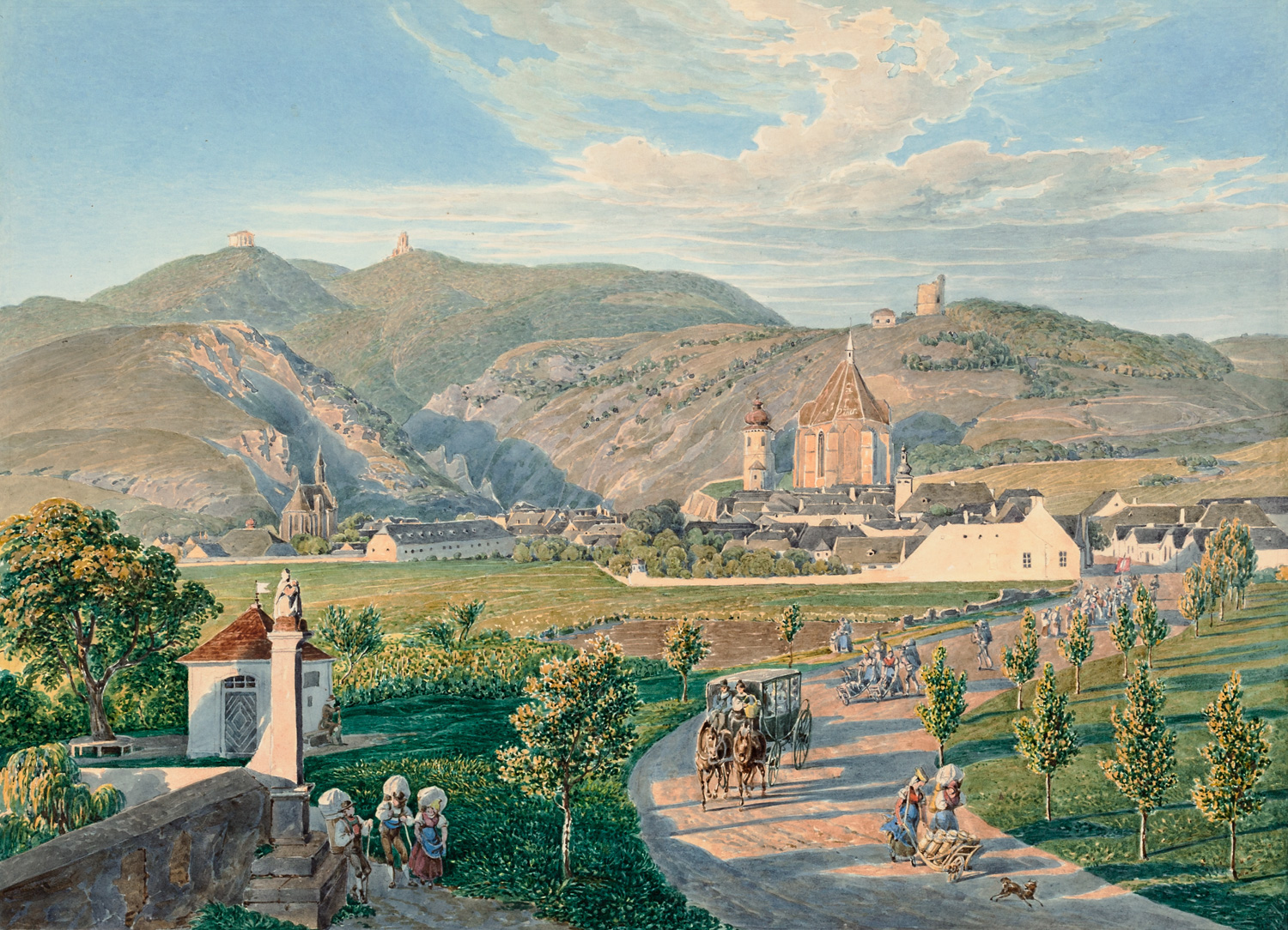 Die Vorderbrühl mit der Burg Mödling, der Meiereiwiese und dem Liechtenstein´schen Schlosshaus