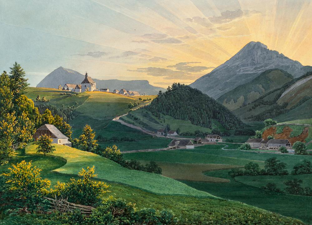 Joachimsberg mit dem Ötscher bei Sonnenuntergang