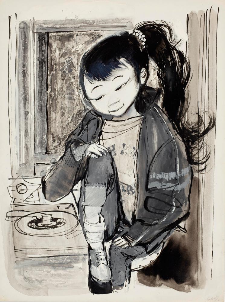 Tusche, laviert, Deckweiß, Bleistift auf Karton