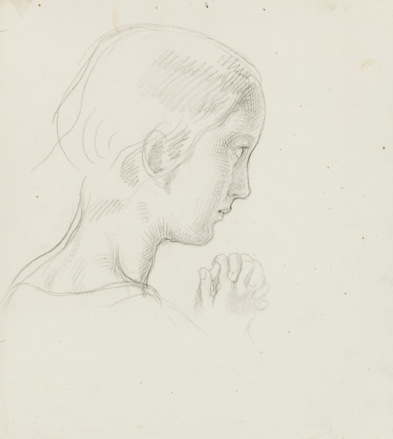 recto: Kopfstudie eines nach oben schauenden Knaben