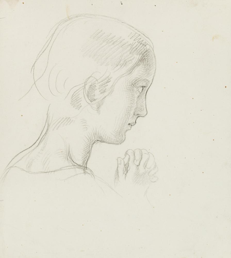 recto: Kopfstudie eines nach rechts oben schauenden Knaben